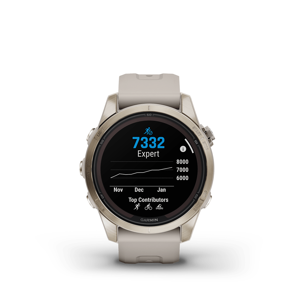 Conquiste cada hora con funciones de entrenamiento avanzadas, monitoreo de salud y bienestar las 24 horas, los 7 días de la semana, y hasta más de un mes de duración de la batería con la lente de carga solar Power Sapphire ™ 1 y una caja de reloj resistente diseñada para muñecas más pequeñas.