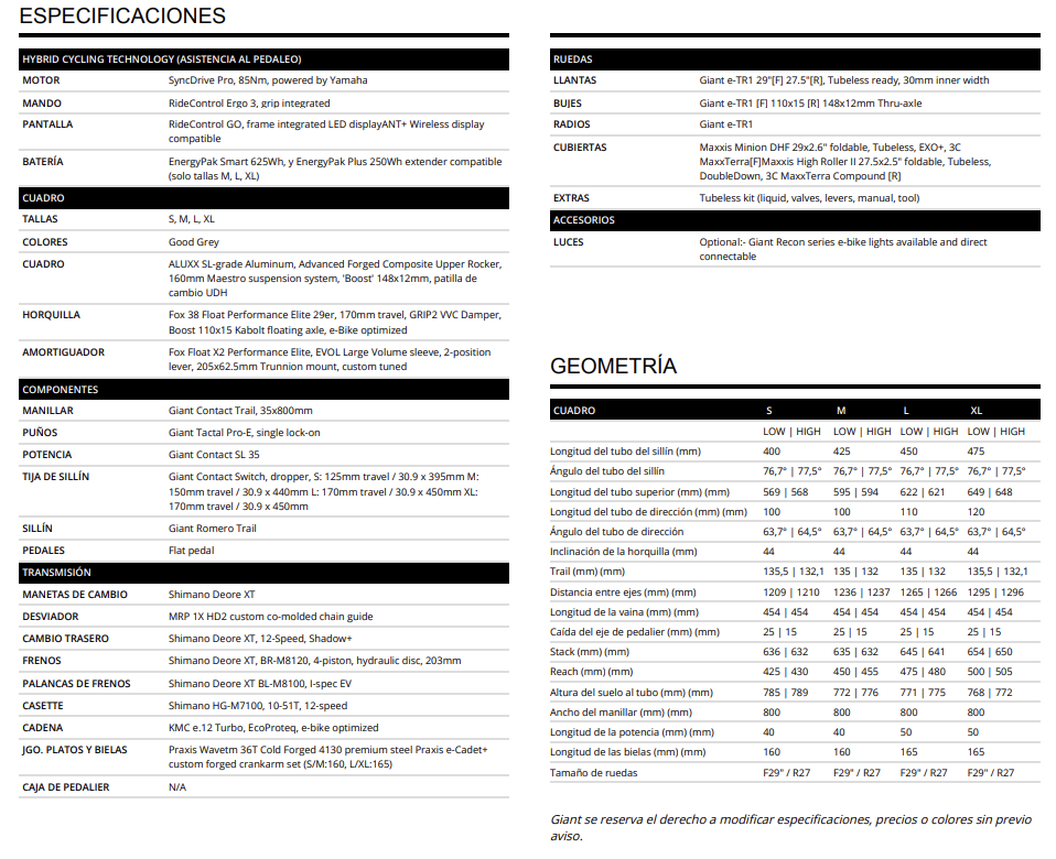 BICICLETA ASISTIDA GIANT REIGN E+ 1 22