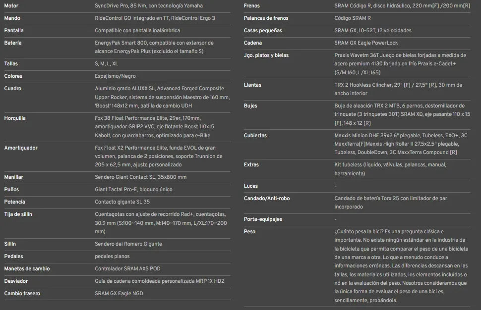 Si no esta disponible BICICLETA ASISTIDA GIANT REIGN E+ 1 23 pregunta por nuestro WhatsApp