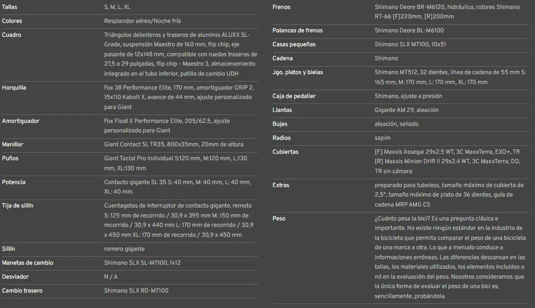 BICICLETA DE MTB GIANT REIGN 29 1 AIRGLOW 2023
