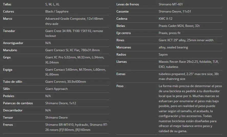 Si no esta disponible BICICLETA DE MTB GIANT XTC ADVANCED 29 3-GU NEGRO/AZUL 2023 pregunta por nuestro WhatsApp