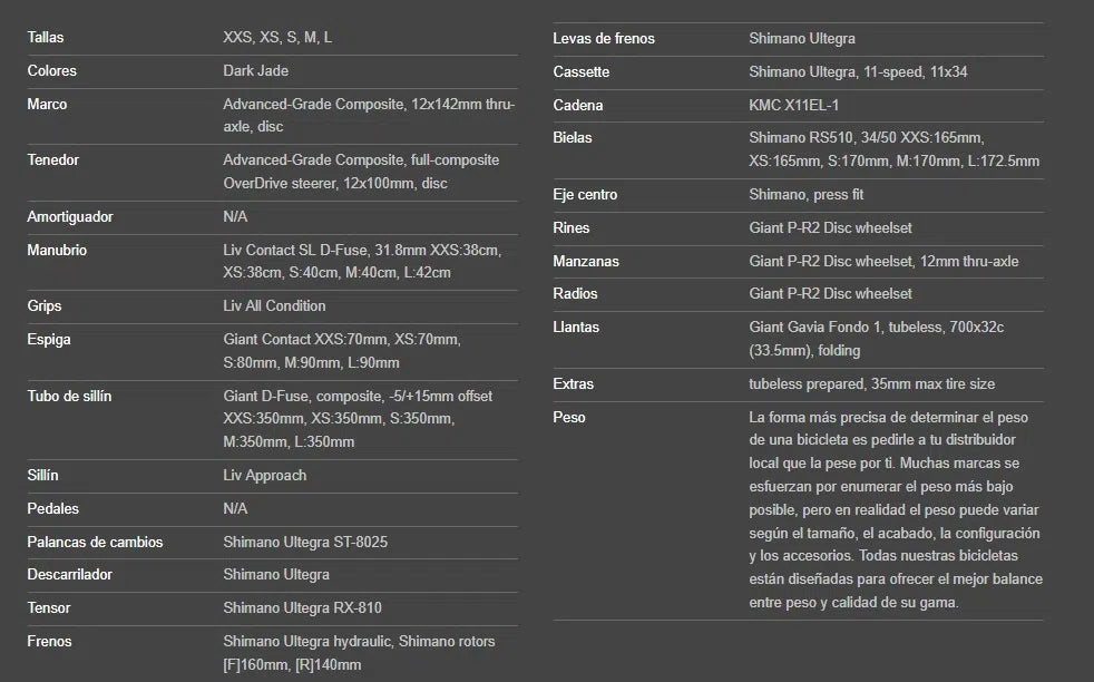Si no esta disponible BICICLETA RUTA LIV AVAIL ADVANCED 1 (2022) pregunta por nuestro WhatsApp
