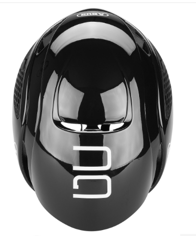El casco negro brillante Abus GameChanger redefine la aerodinámica en el ciclismo de carretera.