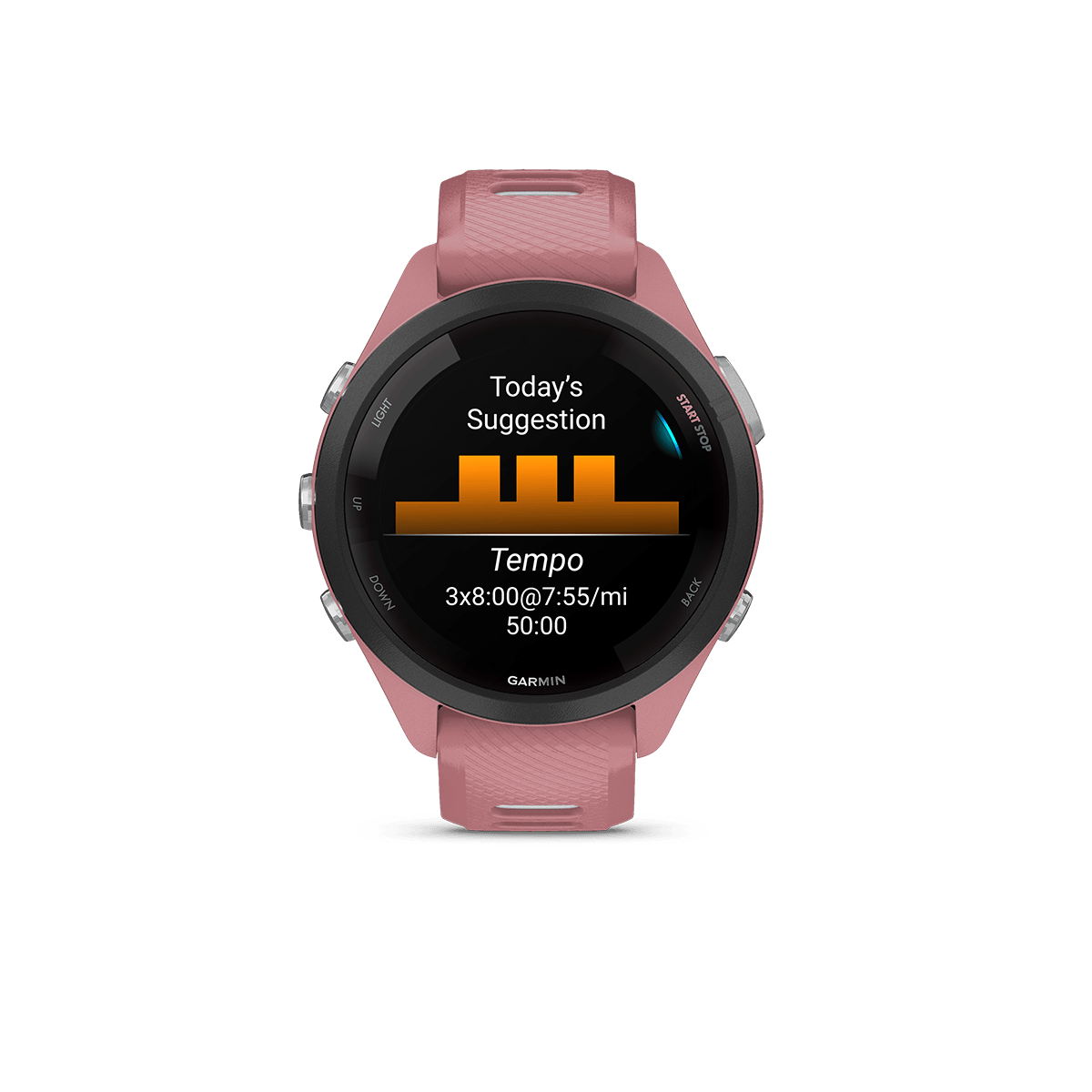 Forerunner 265S viene precargado con entrenamientos gratuitos de HIIT, fuerza, cardio, yoga y pilates para que puedas cambiar tu forma de sudar.