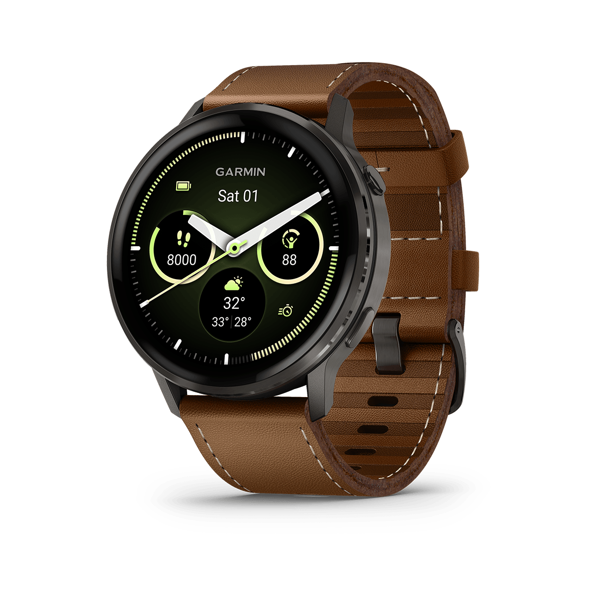 Realiza mejoras hacia un estilo de vida más saludable con amplias funciones de monitoreo de la salud, como el monitoreo de energía Body Battery, estrés , Pulsioxímetro y seguimiento de la salud de la mujer, incluidas estimaciones de ovulación pasada y más