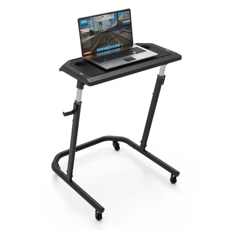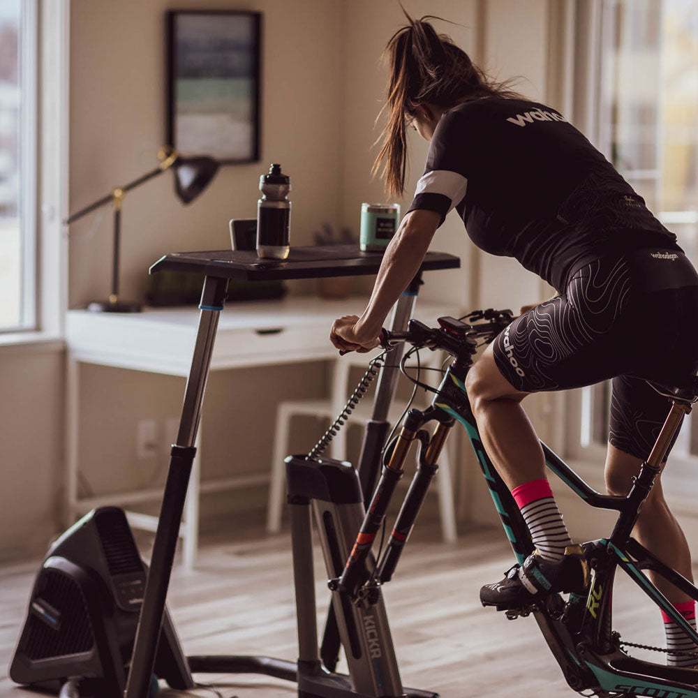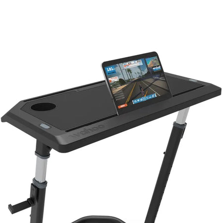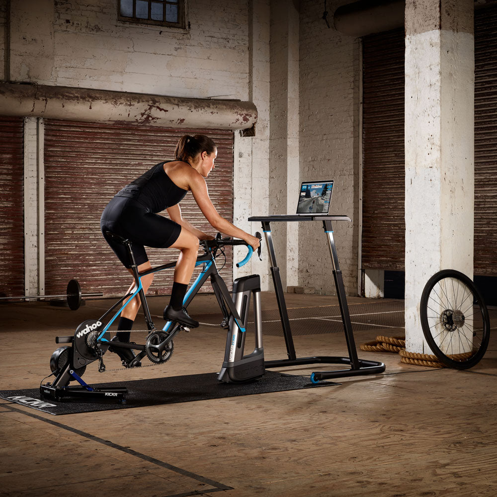 La mesa KICKR de Wahoo se ha diseñado para que tengas todo a tu alcance mientras entrenas, y además tiene otros muchos usos. Puedes usarla como mesa para ciclismo indoor con tu rodillo de entrenamiento o como mesa para trabajar de pie en tu oficina. Es completamente ajustable para que puedas cambiar su posición, ya sea de pie, sentado en vertical o pedaleando con las manos en las manetas.