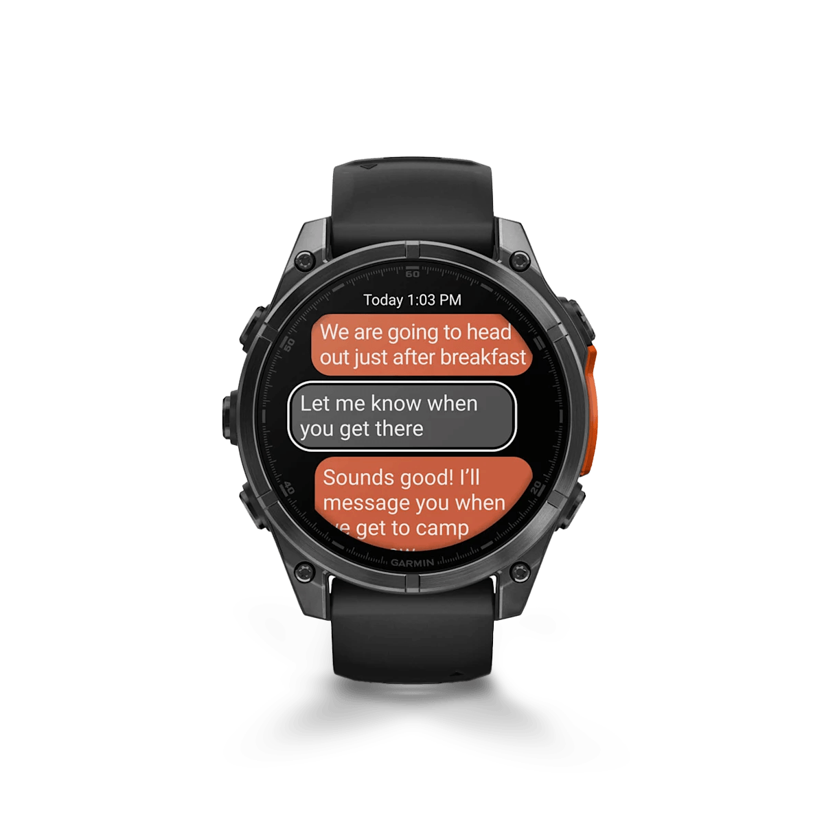 Haz y recibe llamadas telefónicas desde tu reloj cuando esté emparejado con tu teléfono inteligente. Además, controla las funciones del reloj con comandos de voz fuera de la red o usa el asistente de voz de tu teléfono inteligente para responder mensajes de texto y más.