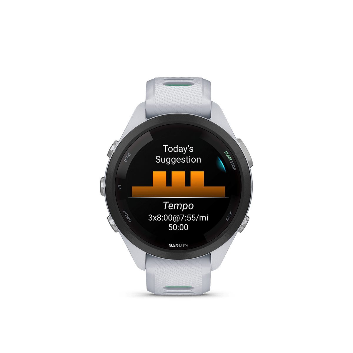 Forerunner 265S viene precargado con entrenamientos gratuitos de HIIT, fuerza, cardio, yoga y pilates para que puedas cambiar tu forma de sudar.